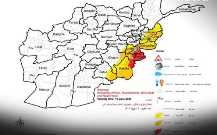 طبق آگاهی این اداره که امروز پنجشنبه، 25 خرداد/ جوزا منتشر شده، فردا بارندگی، سیل و باد شدید در استانهای نورستان، کنر، لغمان، ننگرهار، لوگر، پکتیا، خوست، پکتیکا، زابل، غزنی و میدانوردک پیشبینی شده است.