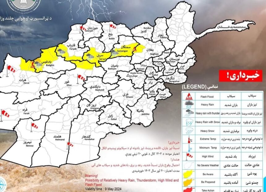 خبرگزاری راسک: ریاست هواشناسی وزارت ترانسپورت و هوانوردی گروه طالبان اعلام کرد که احتمال بارش نسبتاً شدید باران، سرازیرشدن سیلاب و وزش شدید باد در هفت استان کشور پیشبینی میشود.