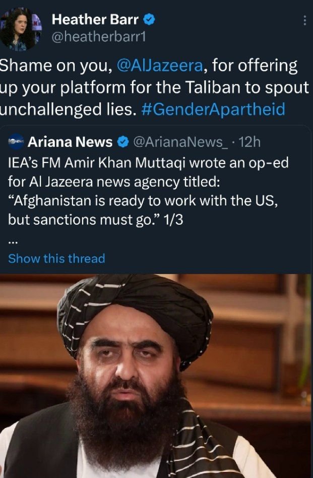 هدر بار در توییتر نوشت: «الجزیره برتو شرم باد که پلتفرم خود را در اختیار طالبان قرار میدهی تا دروغ های خود را بدون چون و چرا نشر کند.»