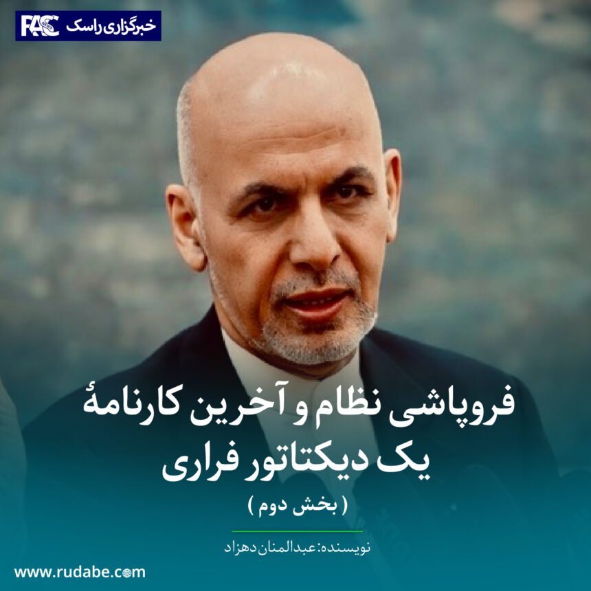 بعد از سقوط حکومتِ به اصطلاح {جمهوریت}، بسیاری از مقامات ارشد جمهوریت غنی و حتا نزدیکترین افراد حلقۀ او، اذعان کردند که غنی تصمیم داشت قدرت را رسماً به طالبان تسلیم کند؛ اما سقوط نظام به چنان سرعتی پیش رفت که برای غنی مجالِ عملی کردن آن را نداد. حامدکرزی که همیشه در دولت غنی، همچون رئیس جمهور سایه عمل میکرد و پیوسته از برنامههای او حمایت میکرد. در گفتوگو با آسوشیتدپرس گفت که «طالبان پایتخت افغانستان را نگرفتند؛ بلکه آنها دعوت شده بودند» حمدالله محب، مشاور شورای امنیت ملی حکومت غنی و همه کارۀ دستگاه امنیتی کشور در گفتوگویی که به تاریخ 24 سنبله/ شهریور 1400 با رادیو آزادی پس از فروپاشی نظام انجام داد، گفت که «محمد اشرف غنی رئیس جمهور پیشین کشور میخواست که قدرت را از طریق لویه جرگه(مجلس بزرگان) به طور مسالمت آمیز به طالبان انتقال دهد». او در رابطه به فرارشان از کابل، گفت که میترسیدیم که غنی به سرنوشت داکتر نجیب روبرو نشود، به همین دلیل افغانستان را ترک گفتیم. اما شخص غنی سه روز بعد از فرارش، در پیامی ویدیوی که از ابوظبی پایتخت امارات متحده عربی منتشر کرد، گفت که مسوولان امنیتی حکومتش به او گفته بودند که «جانش در خطر» است. فرض را به این بگریم که ادعای غنی درست باشد و جان او در خطر بود؟!، آیا او از نظر قانونی، اخلاقی و انسانی به عنوان یک دیکتاتور مستبد، سرقوماندان اعلای قوای مسلح کشور، حق داشت که حکومتِ جمهوری، دولت، نیروهای امنیتی و مردم افغانستان را بیسرنوشت رها کند و به خارج از کشور بگریزد؟ او در مصاحبۀ که رادیو چهار بیبیسی با گردانندگی یک ژنرال کهنهکار انگلیسی به نام «سر نیک کارتر» داشت، گفت که بهخاطر درگیری میان گروههای طالبان و ویران شدن کابل، تصمیم گرفتم که از افغانستان بیرون شوم. غنی در این مصاحبۀ افزون بر تأئیدی «خطری جانش» گفت که «دلیل اصلی خروج من، جلوگیری از ویران شدن کابل بود. دو گروه متفاوت از طالبان از دو جهت مختلف در حال وارد شدن به کابل بودند. احتمال یک درگیری شدید، بین آنها بسیار بالا بود». منظور غنی از درگیری بین طالبان(بهویژه گروه قندهاریها و شبکۀ حقانی» بود. سوال این است که آخر غنی چرا نگران درگیری میان شبکه حقانی و گروه طالبان بود؟ غنی نسبت به طالبان قندهاری بدبین بود. اولاً شبکۀ حقانی از قبیلهای غنی بود و غنی با این شبکه همذادپنداری قبیلهیی داشت و قبل از فرارش این گروه را در کابل جابهجا کرده بود. دوم اینکه او با سپردن قدرت به شبکه حقانی آخرین ضربه را به گروه طالبان قطرنشین زد و از حامیان منطقهیی آنها نیز انتقام گرفت. بیگمان وقتی غنی از کابل گریخت، تمام نهادهای امنیتی و تجهیزات نظامی بدست شبکه حقانی افتاد. غنی در مصاحبۀ که با این ژنرال نظامی ارتش بریتانیا انجام داد، تنها نگران جنگ بین شبکۀ حقانی و گروه طالبان بود، نه بههدر رفتن دستآوردهای بیست ساله، که به دروغ از آن یاد میکرد و نه هم فروپاشی ارتش و نظام افغانستان، نه سپردن سرنوشت مردم افغانستان به دست گروه طالبان و نه گسترش فقر و بیچارهگی و آوارهگی مردم افغانستان. با فرار غنی همه چیز به هم ریخت و کشور به کودالی بدبختی فرو رفت.