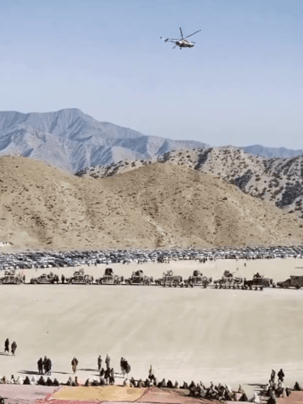 تصاویر از این مراسم نشان میدهد که نیروهای طالبان در محل مستقر شده و هلیکوپتر مدام در حال گردش است.