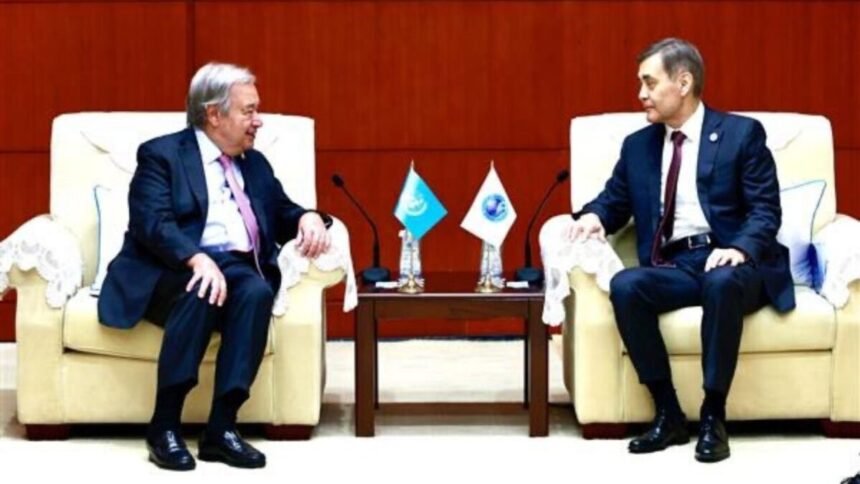 خبرگزاری راسک: انتونیو گوترش، دبیرکل سازمان ملل متحد، در جریان حضور خود در نشست سازمان همکاری شانگهای (SCO) در تیانجین چین، با نورلان یرمکبایف، دبیرکل این سازمان، دیدار و گفتوگو کرده است. سخنگوی سازمان ملل روز یکشنبه، نهم سنبله، در پیام رسمی خود در شبکه اجتماعی اکس اعلام کرده است که محورهای اصلی این دیدار شامل مبارزه با تروریسم، توسعه پایدار و تغییرات اقلیمی بوده است.