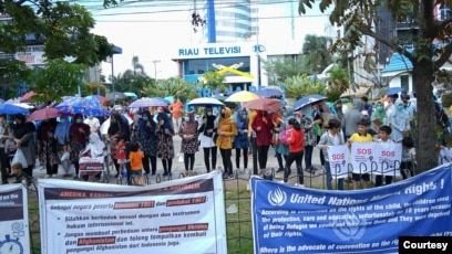 راه‌پیمایی پناه‌جویان افغانستانی در کشور اندونیزیا هم‌زمان با روز جهانی پناه‌جویان