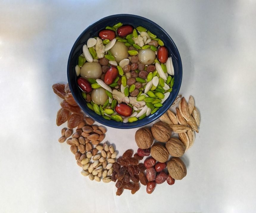 در مرحله آخر، مقداری سنجد هم تمیز میکنند و به آن ظرف میافزایند و البته هل و گلاب هم چاشنی حتمی است. برخیها برای شیرینتر شدن این ترکیب، شکر هم به آن اضافه میکنند، اما برخی دیگر به شیرینی طبیعی کشمش و زردآلو و سنجد اکتفا میکنند که البته خوشایندتر است.