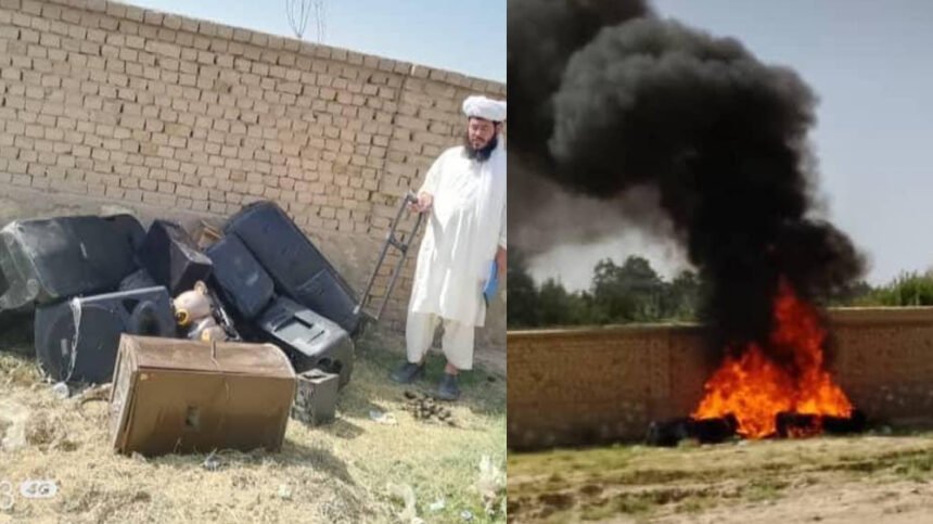 این در حالی‌ست که گروه طالبان پیش از این نیز در استان‌های مختلف ابزارهای موسیقی را جمع‌آوری و آن‌ها را تخریب کرده بودند و آوازخوانی و شنیدن موسیقی را حرام خوانده‌اند.