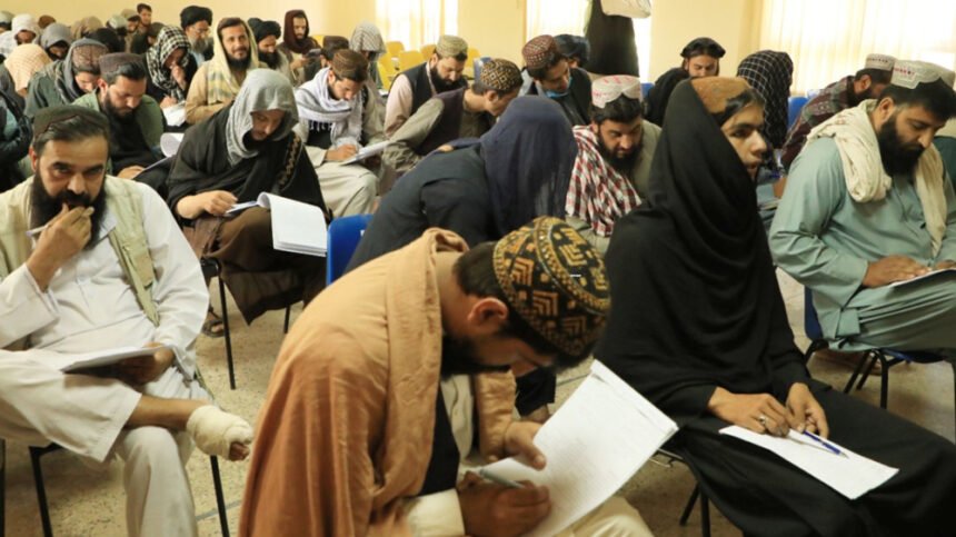 وزارت تحصیلات عالی طالبان نیز از فارغان مدارس دینی آزمون اخذ میکنند و برای آنان سند تحصیلی دانشگاهی توزیع میکنند.