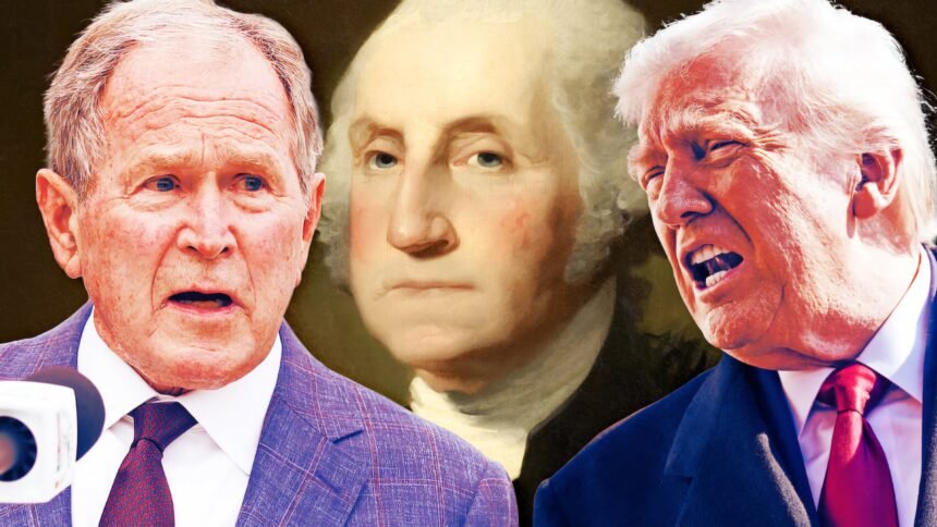 بوش در بخش دیگری از مقاله، ویژگی‌های غیرترامپی واشنگتن را ستود و به اهمیت خودکنترلی، ادب، فروتنی و دیپلماسی نخستین رئیس‌جمهور اشاره کرد. او نوشت: «کمتر ویژگی‌هایی الهام‌بخش‌تر از فروتنی واشنگتن یافته‌ام. او با حفظ شرافت و خودکنترلی، مقام ریاست‌جمهوری را محترم شمرد و از تبدیل آن به قدرت‌های شبه‌اسطوره‌ای جلوگیری کرد.»