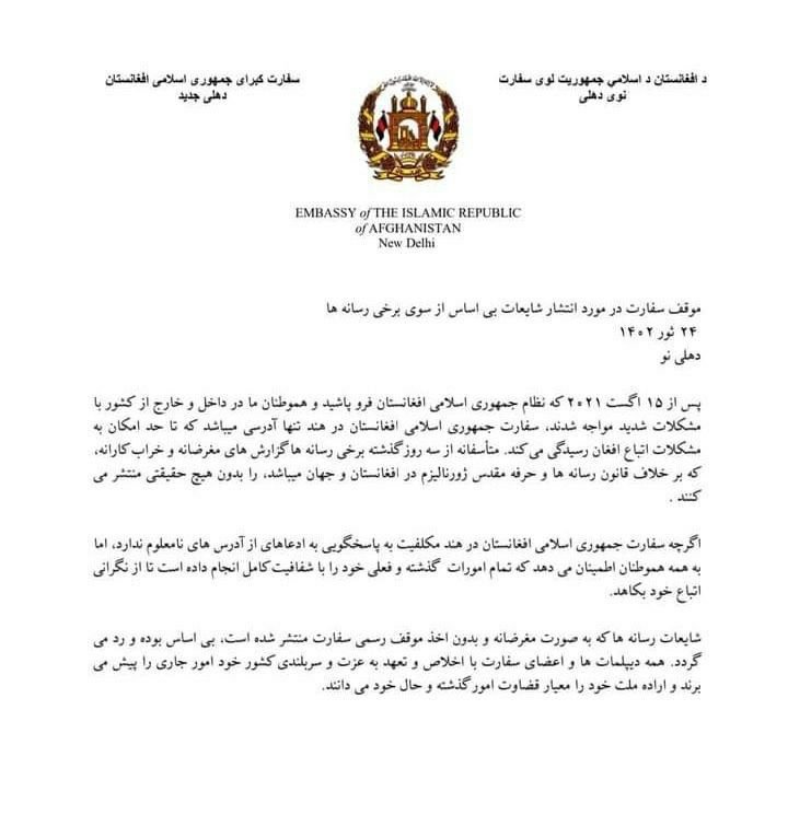 شایعه های رسانهها که به صورت مغرضانه و بدون اخذ موقف رسمی سفارت منتشر شده است، بیاساس بوده و رد میگردد.
